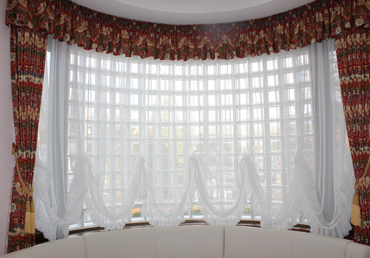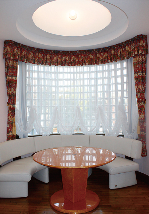 「実際に取付けてみると、ショールームで拝見した時と印象が少し変わり、インテリア・ヒロさんのアドバイス通りお部屋とのマッチングが素晴らしかったです。ダイニングの曲面のカーテンの造作は、特に気に入っています。また、赤いカーテンの上飾りの長さも適切に調整して下さり、やはり施工の経験量が大きく影響するのを実感しました。」