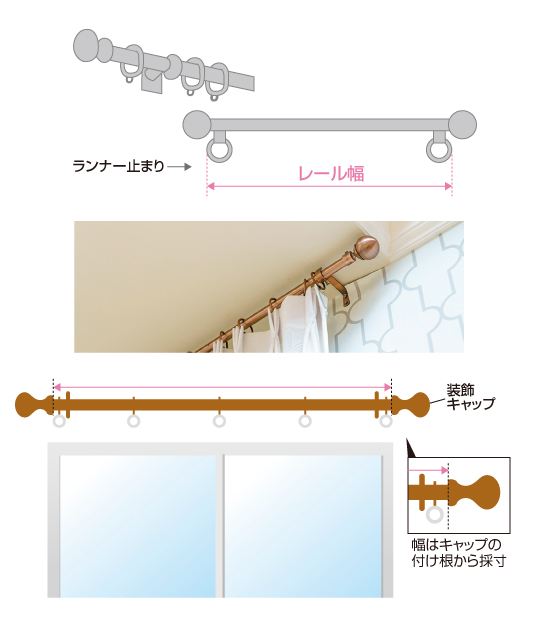 カーテンレールの両端に付いている固定ランナーから反対側の固定ランナーまでの長さを測りましょう!