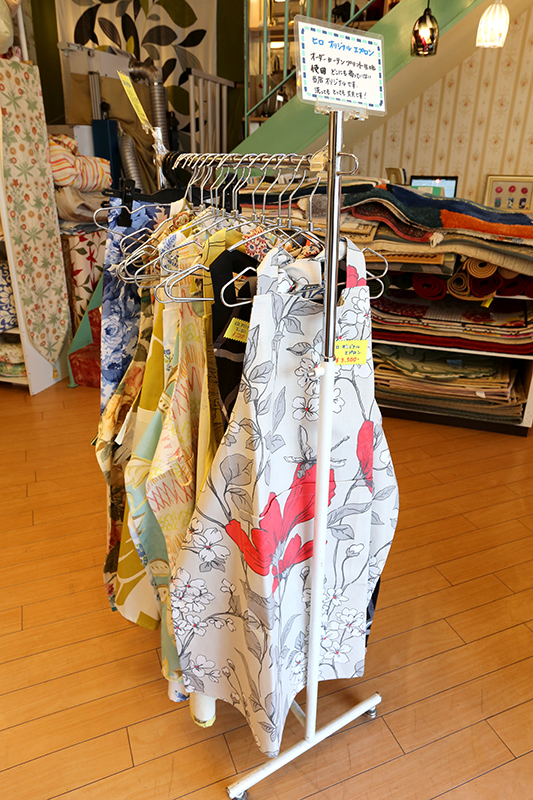 他に、海外ブランドの生地使用のエプロン、テーブル、ランナー背当クッション、シートクッションが人気です。